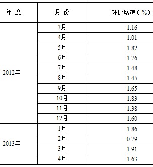 根據(jù)季節(jié)調(diào)整模型自動(dòng)修正程序,對(duì)2012年3月份以來(lái)的固定資產(chǎn)投資(不含農(nóng)戶)環(huán)比增速進(jìn)行修訂。修訂結(jié)果及2013年4月份環(huán)比數(shù)據(jù)如下: