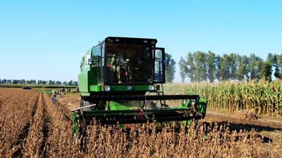 巴彥農(nóng)民在收獲大豆,目前巴彥縣的農(nóng)業(yè)生產(chǎn)已全部實現(xiàn)機(jī)械化