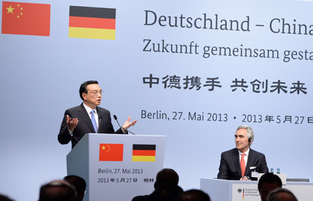 國務(wù)院總理李克強(qiáng)27日在柏林出席中德工商界午餐會(huì)并發(fā)表演講,介紹了中國經(jīng)濟(jì)形勢和中國新一屆政府的經(jīng)濟(jì)政策,提出深化中德、中歐合作的新主張。