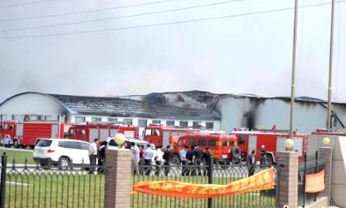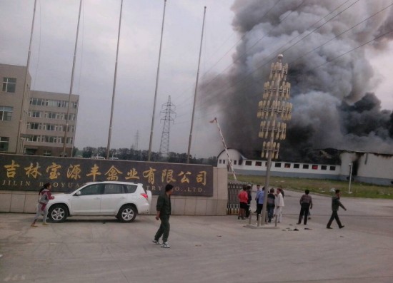 2013年6月3日早上7時03分許,吉林省德惠市“吉林寶源豐禽業(yè)有限公司”發(fā)生爆炸后引起火災。上午9時許,有媒體記者在事發(fā)的吉林寶源豐禽業(yè)有限公司大門外看到,廠房已基本被燒落架,內(nèi)部焦黑。不時有120急救車進出廠區(qū),廠區(qū)附近可以聞到有一股強烈的刺鼻味,F(xiàn)場多輛消防車還在進行噴水,大批特警和警察在維持秩序。