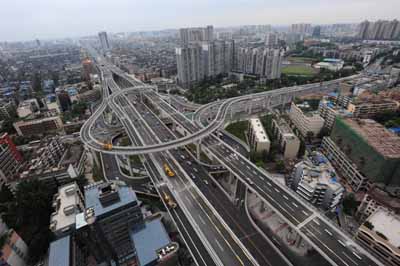 俯瞰新二環(huán)的營(yíng)門口立交。