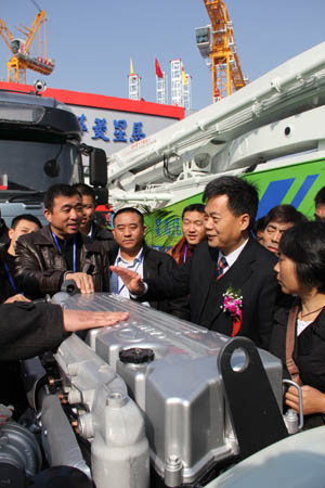 華菱星馬董事長(zhǎng)劉漢如自信地為嘉賓介紹華菱自主重型發(fā)動(dòng)機(jī)情況 |