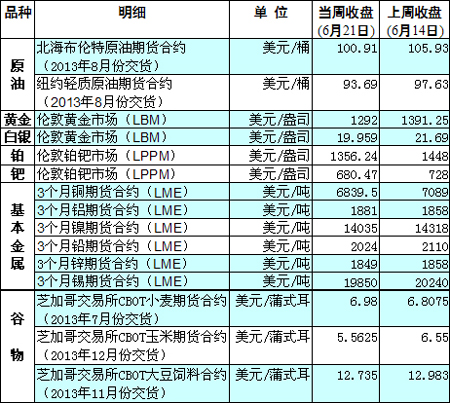 國(guó)際大宗商品期貨價(jià)格明細(xì)表[2013-06-24]