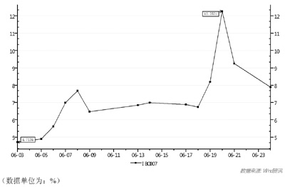 | 6月3日-24日 shibor走勢(shì)圖 |