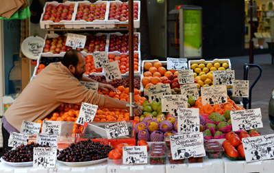 一名小販7月2日在悉尼中央商務(wù)區(qū)打理自己的水果攤。當(dāng)日,澳大利亞央行(澳聯(lián)儲)宣布,官方基準(zhǔn)利率維持在2.75%的水平不變。澳聯(lián)儲總裁史蒂文斯在議息會議結(jié)束后表示,當(dāng)前實(shí)施的寬松貨幣政策有助于澳大利亞經(jīng)濟(jì)增長。他還說,物價水平保持穩(wěn)定,為央行提供了進(jìn)一步降息的空間。
