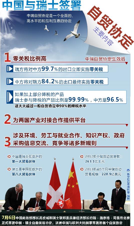 中瑞自由貿(mào)易協(xié)定簽署進(jìn)程及主要內(nèi)容