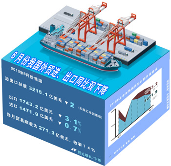 10日公布的進出口數(shù)據(jù)雙雙負增長進一步增加了市場的悲觀預期。6月出口額同比下降3.1%,環(huán)比下降4.6%;進口額同比下降0.7%,環(huán)比下降9.3%,遠低于市場預期。