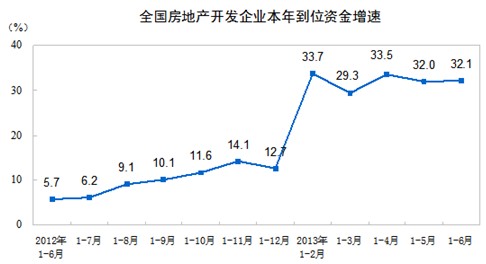 1-6月份,房地產(chǎn)開發(fā)企業(yè)到位資金57225億元,同比增長32.1%,增速比1-5月份提高0.1個百分點。其中,國內(nèi)貸款9901億元,增長30.4%;利用外資234億元,增長15.9%;自籌資金21630億元,增長16.3%;其他資金25460億元,增長50.3%。在其他資金中,定金及預(yù)收款15713億元,增長51.2%;個人按揭貸款6763億元,增長60.4%。