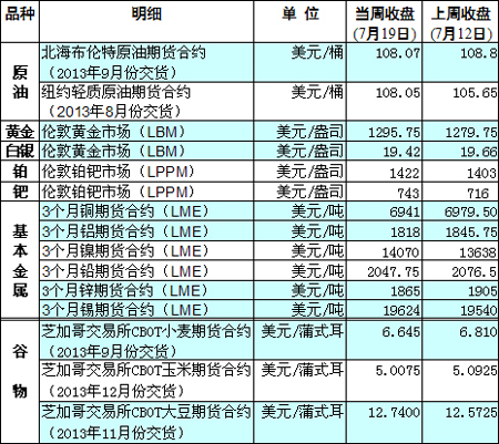 國際大宗商品期貨價(jià)格明細(xì)表[2013-07-22]