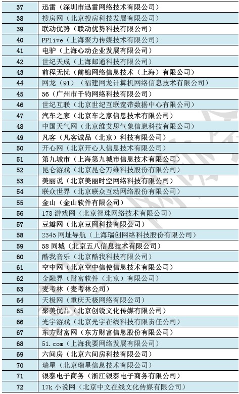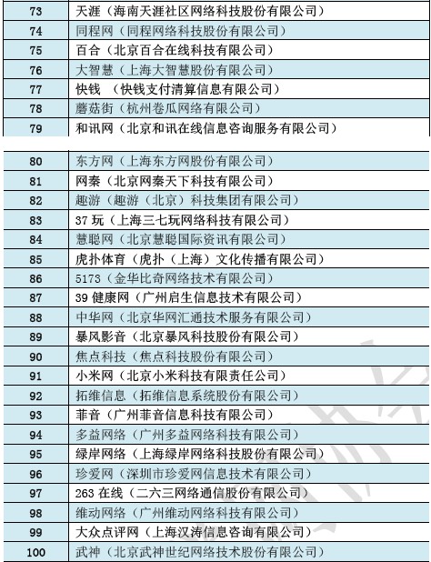 附2013中國互聯(lián)網(wǎng)100強(qiáng)榜單: