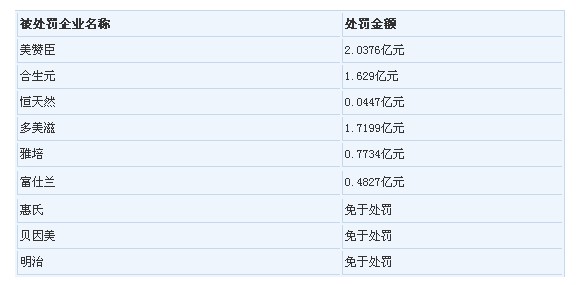 國家發(fā)展和改革委員會7日宣布,合生元等6家乳粉生產(chǎn)企業(yè)因違反《反壟斷法》限制競爭行為共被罰約6.7億元,成為我國反壟斷史上開出的最大罰單。3家企業(yè)因配合執(zhí)法機(jī)關(guān)調(diào)查并積極整改被免除處罰。