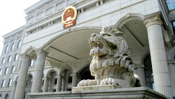 湖南省某市行政中心一幢形似白宮的辦公樓前巨獅怒吼。 |