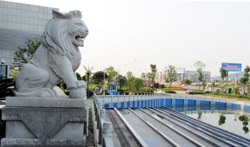 湖南省一個(gè)省級(jí)經(jīng)濟(jì)園區(qū)辦公樓前巨獅、噴泉和水池。 |
