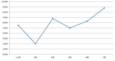 國家統(tǒng)計(jì)局?jǐn)?shù)據(jù)顯示,7月份工業(yè)增加值增速為9.7%,比上個(gè)月增速提高了0.8個(gè)百分點(diǎn),明顯高出此前機(jī)構(gòu)預(yù)測(cè)均值,環(huán)比增速也從上月的0.71%提高到0.88%。7月CPI增長2.7%,升幅較溫和;7月PPI同比下降2.3%;社會(huì)消費(fèi)品零售總額同比增長13.2%;7月制造業(yè)PMI升至50.3%。