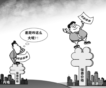 “在香港買保險的費(fèi)率的確比內(nèi)地低,如重大疾病險,大致比內(nèi)地低兩至三成。若購買壽險附加重大疾病險,費(fèi)率一般僅為內(nèi)地的1/2甚至1/3!盇IA友邦保險的一位代理人表示,由于香港保險市場競爭激烈,價格雖然便宜,保障范圍卻更廣。