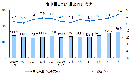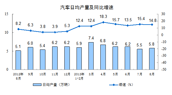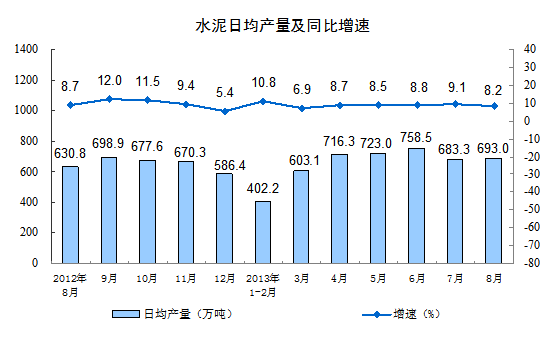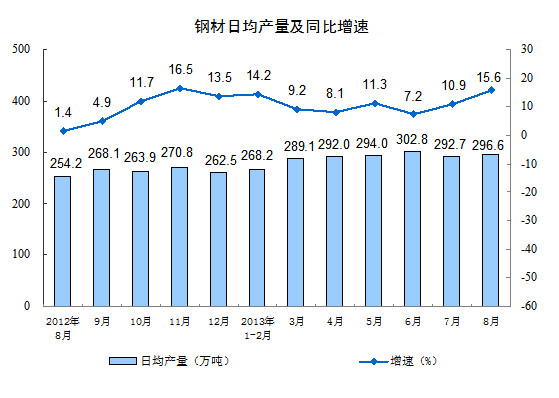 分產(chǎn)品看,8月份,464種產(chǎn)品中有305種產(chǎn)品同比增長(zhǎng)。其中,發(fā)電量4987億千瓦時(shí),同比增長(zhǎng)13.4%;鋼材9194萬噸,增長(zhǎng)15.6%;水泥21484萬噸,增長(zhǎng)8.2%;原油加工量3974萬噸,增長(zhǎng)5.5%;十種有色金屬337萬噸,增長(zhǎng)5.7%;乙烯126萬噸,增長(zhǎng)7.7%;汽車179.6萬輛,增長(zhǎng)14.8%;轎車102.3萬輛,增長(zhǎng)11.2%。