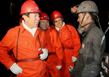 神華集團公司董事長張喜武在井下檢查煤炭安全生產(chǎn)!≠Y料照片 |