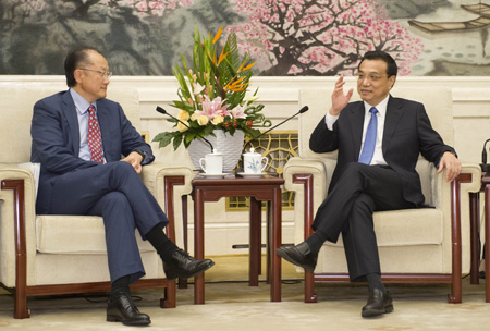 9月16日,國(guó)務(wù)院總理李克強(qiáng)在北京人民大會(huì)堂會(huì)見(jiàn)世界銀行行長(zhǎng)金墉。