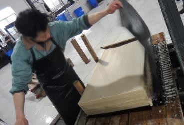 鉛山連四紙產(chǎn)地分布在武夷山脈南、北麓,鼎盛時(shí)期有紙槽兩千余張!捌埐灰椎,措手七十二”,連四紙的制作工藝程序十分考究。原料要用毛竹的嫩竹竿,在立夏前后嫩竹將要長(zhǎng)出兩對(duì)芽葉的時(shí)候砍伐取用。紙料需經(jīng)幾個(gè)月的日曬雨淋,使之自然漂白,生產(chǎn)周期長(zhǎng)達(dá)一年。連四紙依靠手工操作制成,無(wú)理化指標(biāo),全憑經(jīng)驗(yàn)駕馭。制造過(guò)程的技術(shù)關(guān)鍵:一是水質(zhì),凡沖、浸、漂、洗所接觸的水均不能有任何污染,須采用當(dāng)?shù)厝?二是配藥,藥系采用水卵蟲樹制成。