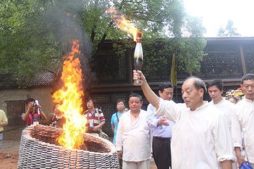 祭窯神,窯神(“風(fēng)火神”)指明代浮梁人童賓。童賓為制器而躍入火中而成為瓷器制作業(yè)的崇拜神,又被尊為“風(fēng)火仙師”(或“廣利窯神”)。他的傳說在景德鎮(zhèn)廣為流傳,年希堯《重修風(fēng)火神廟碑記》,唐英《火神童公傳》都有記載。童賓廟后取名為“佑陶靈祠”,于每年農(nóng)歷四月十五在御窯遺址舉行迎神祭祀活動,傳承至今。首先由拖坯向各搭坯戶收取費用,一般是一夫坯兩塊銀元。大約每座窯可收到50~80塊銀元。收齊款后,拖坯與把莊商量好費用的安排,確定日期,交各窯工分頭進行,向酒樓訂酒席,請三腳班,借桌凳、香爐燭臺,布置場面。祭祀這天,窯里打掃得干干凈凈,窯門貼上用黃裱紙書寫的“風(fēng)火仙師”四個大字,兩旁貼一副對聯(lián):“風(fēng)助火力;火借風(fēng)威”。窯墻兩側(cè),掛兩面大的“飛虎旗”。窯門前面有一供桌,桌上放有供品和香爐、燭臺。供桌后兩旁擺幾張桌子,中間空出一塊踩地戲的場子。黃昏時候,窯工們齊集窯上。把莊點燃紅燭、長香,虔誠默禱叩拜,并燃放鞭炮。接著,酒樓送來四盤十碗加熱炒或十碗加熱炒席面,大家一邊飲酒,一邊看三腳班的踩地戲,直到深夜收場。