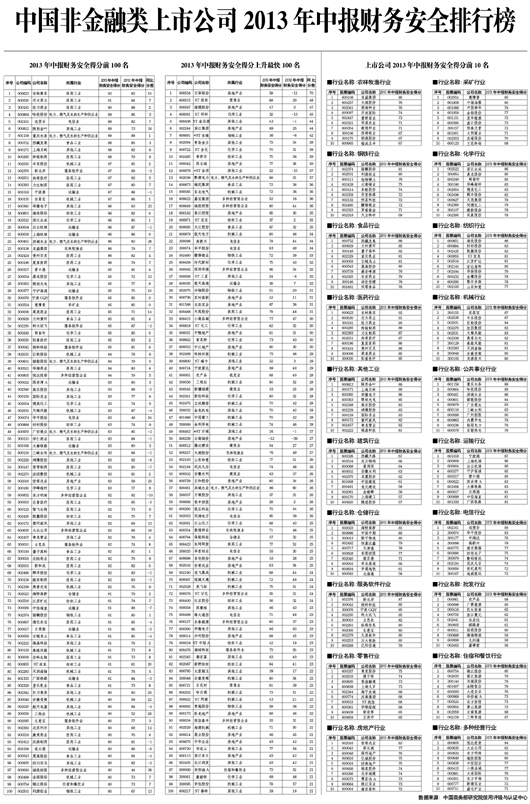 中國(guó)非金融類上市公司2013年中報(bào)財(cái)務(wù)安全排行榜