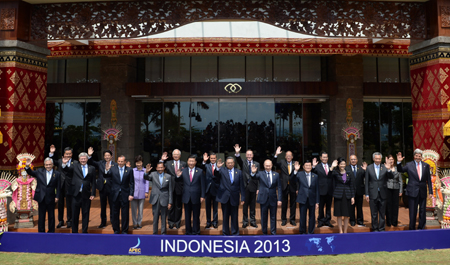 亞太經(jīng)合組織第二十一次領(lǐng)導(dǎo)人非正式會(huì)議8日在印度尼西亞巴厘島繼續(xù)舉行。國(guó)家主席習(xí)近平出席并發(fā)表講話,提出構(gòu)建覆蓋太平洋兩岸的亞太互聯(lián)互通格局。 這是會(huì)議開(kāi)始前,習(xí)近平和與會(huì)領(lǐng)導(dǎo)人集體合影。