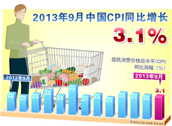 國(guó)家統(tǒng)計(jì)局14日發(fā)布,9月全國(guó)居民消費(fèi)價(jià)格總水平(CPI)同比上漲3.1%,漲幅創(chuàng)下7個(gè)月新高,高于8月0.5個(gè)百分點(diǎn),高于此前平均預(yù)期0.2個(gè)百分點(diǎn)。