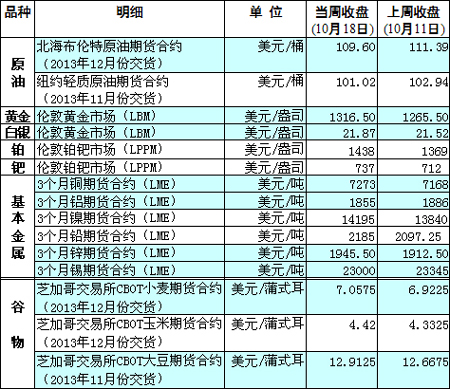 國際大宗商品期貨價(jià)格明細(xì)表[2013-10-21]