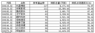 半年報(bào)基金控盤程度最高的10只創(chuàng)業(yè)板股票 |