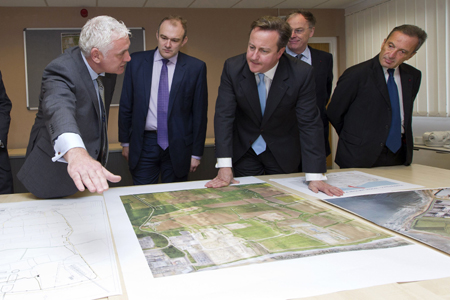 21日,英國政府與法國電力集團公司(法電集團)達成工程建設協(xié)議,后者將與法國阿,m(Areva)核電集團以及中國兩家核電企業(yè)合作,在英國西南部欣克利角興建兩臺第三代壓水堆核電機組(EPR),投資總額約160億英鎊(約合260億美元)。法電集團將持股45%至50%,阿海琺將持股10%,中國核工業(yè)集團公司(CNNC)和中國廣東核電集團有限公司(CGN)將共同持股約30%至40%。 圖為英國首相卡梅倫(左三)當日在英國西南部欣克利角查看核電機組建設方案。