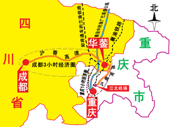 省轄縣級(jí)市華鎣市,幅員面積470平方公里,是四川以東進(jìn)出重慶的門(mén)戶,距重慶、成都分別為80和300公里,僅1小時(shí)和3小時(shí)車(chē)程。長(zhǎng)江二級(jí)支流渠江流經(jīng)市境20多公里,正規(guī)劃建設(shè)的廣安港明月作業(yè)區(qū),是華鎣市作為成渝經(jīng)濟(jì)區(qū)的示范區(qū)、打造川渝經(jīng)濟(jì)合作“橋頭堡”的重要支撐,建成后千噸貨運(yùn)將直抵上海。