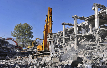 11月4日,大型機(jī)械在北京市昌平區(qū)拆除違法建設(shè)的“小產(chǎn)權(quán)房”。近日,北京市開始對(duì)京郊北部地區(qū)的昌平區(qū)陽坊鎮(zhèn)東貫市村內(nèi)的13棟4層小樓進(jìn)行拆除。據(jù)悉,此次拆除面積約4萬平方米。