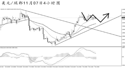 美元兌瑞郎持續(xù)對上周的低位反彈走勢進(jìn)行修正。4小時(shí)圖上看,匯價(jià)前方的上沖斜率加大,逐步遠(yuǎn)離了上升趨勢線,后市有向0.9060一帶發(fā)起回調(diào)的風(fēng)險(xiǎn)。雖然均線系統(tǒng)保持依托狀態(tài),但前方道氏高點(diǎn)0.9175的壓制力較強(qiáng),在突破此點(diǎn)位之前,看漲需謹(jǐn)慎。預(yù)計(jì)短線匯價(jià)仍有進(jìn)一步下行的風(fēng)險(xiǎn)。
