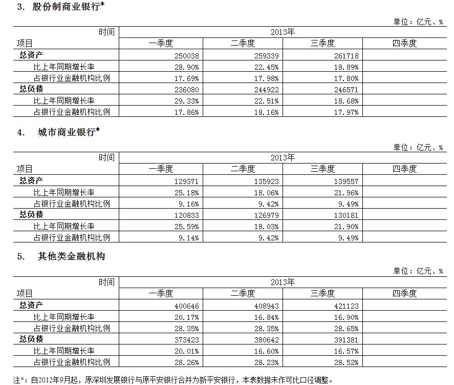截至三季度末,銀行業(yè)金融機(jī)構(gòu)總資產(chǎn)為1469955億元,同比增長(zhǎng)14.35%,總負(fù)債為1372438億元,同比增長(zhǎng)14.09%。