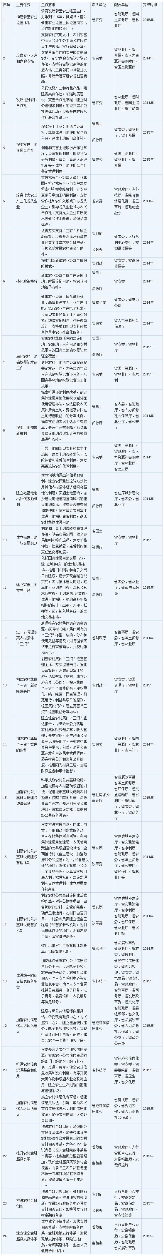 【安徽省人民政府發(fā)布的農(nóng)村綜合改革示范試點主要工作任務(wù)分解表】