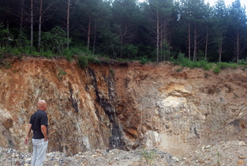 雞西市麻山區(qū)一處石墨礦。只見不少地方“山皮”被挖開,植被遭到破壞,裸露巖石留有被大型機(jī)械挖掘的痕跡。 記者