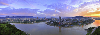令人神往的中國優(yōu)秀旅游城市。這里,擁有世界級、國家級、省級風(fēng)景名勝34處,是中國優(yōu)秀旅游城市、中國最佳文化生態(tài)旅游城市、四川新五大精品旅游區(qū)之一。這里,山川形勝,不僅具有融“地表石林、地下溶洞、特大天坑”三絕共生于一體而聞名于世的興文世界地質(zhì)公園,還有秀甲天下,使人們心靈得到凈化、人性得以回歸的國家4A級著名風(fēng)景區(qū)蜀南竹海,是宜山、宜水、宜人、更宜賓的生態(tài)文化樂園。這里,不僅擁有秀美的風(fēng)光,更積淀下了厚重的歷史文化、民俗文化,李莊古鎮(zhèn)的“情”、夕佳山民居文化的“魂”、僰人懸棺的“謎”也極具吸引力,令人神往。這里,不僅孕育出了神州瓊漿“五糧液”,“香”了一條江、“醉”了一條江,而且隨著金沙江滾動(dòng)開發(fā)的深入推進(jìn),向家壩高峽出平湖的壯景,又必將“亮”一條江、“富”一條江。伴隨著旅游業(yè)的強(qiáng)勢崛起,宜賓如同一輪朝陽在天府南緣冉冉升起、光芒四射。