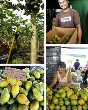 木瓜是生物技術(shù)公司瞧不上的小作物,卻是美國夏威夷州農(nóng)業(yè)支柱。上世紀90年代,公共科研機構(gòu)植物病毒學(xué)家戴尼斯·岡薩弗斯培育的轉(zhuǎn)基因抗病毒木瓜“彩虹”得以推廣,拯救了受環(huán)斑病毒危害的木瓜產(chǎn)業(yè)。如今,夏威夷木瓜除銷往美國本土和加拿大外,也占據(jù)了日本市場。