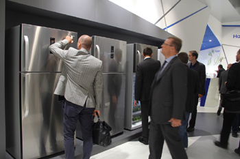 另外,海爾還設(shè)計了針對當?shù)厥袌龅膶掦w冰箱。巴基斯坦天氣非常炎熱,當?shù)厝藢Ρ鶋K的需求量非常大,但因為巴城市電力不足經(jīng)常停電,所以市場上原有的冰箱往往制冰這道工序還沒有完成就已經(jīng)停電了。針對這種情況,海爾開發(fā)出能夠快速制冷的大容積寬體冰箱,容積上滿足了消費者的需求,在冰箱高度上最大方便消費者取放,同時該冰箱擁有快速制冷技術(shù),能夠一個小時快速制冰,滿足消費者在夏季對冰塊的需求。