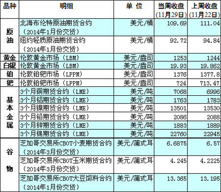 國(guó)際大宗商品期貨價(jià)格明細(xì)表[2013-11-25]