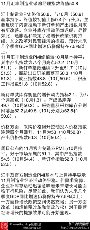 此前,周末公布的中國(guó)官方PMI數(shù)據(jù)同樣向好。中國(guó)11月官方制造業(yè)采購(gòu)經(jīng)理人指數(shù)(PMI)持穩(wěn)于10月份51.4的水平,為2012年5月份以來(lái)最高,且連續(xù)14個(gè)月處于擴(kuò)張狀態(tài)。