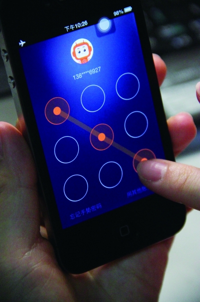 上午,《法制晚報(bào)》記者用一部安裝了iOS6的iPhone4手機(jī)進(jìn)行測(cè)試,前后用時(shí)不到兩分鐘,便重新設(shè)置了支付寶圖形密碼,并順利為手機(jī)充值50元。