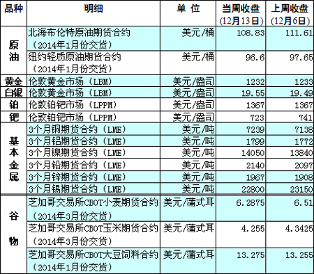 國際大宗商品期貨價(jià)格明細(xì)表[2013-12-16]