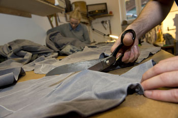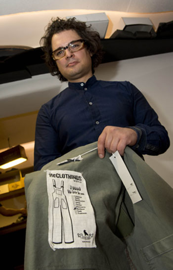 他采用的原材料還包括木匠穿過的藍色工作褲。這些本可能在焚化爐里一把火燒掉的舊衣服經(jīng)過他的手,總會搖身一變,成為這座城市中時尚先鋒人士引以為傲的限量單品。