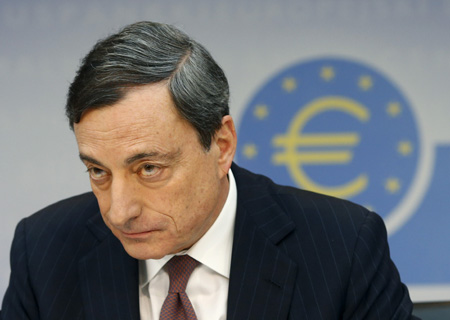 圖為德拉吉在于德國法蘭克福召開的歐洲央行貨幣政策會(huì)議后的發(fā)布會(huì)上發(fā)言。