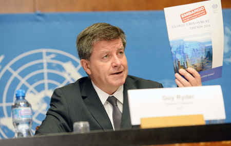 國(guó)際勞工組織當(dāng)天在日內(nèi)瓦發(fā)布2014年度全球就業(yè)趨勢(shì)報(bào)告。該組織總干事蓋伊·賴德在記者會(huì)上說(shuō),2013年,全球失業(yè)率為6%,失業(yè)人口為2.02億,較2012年增加500萬(wàn)人。