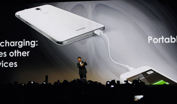 中國華為公司在2014拉斯韋加斯國際消費電子展(CES)一場針對媒體的發(fā)布會上推出其2014款新型智能手機(jī)。記者 方喆