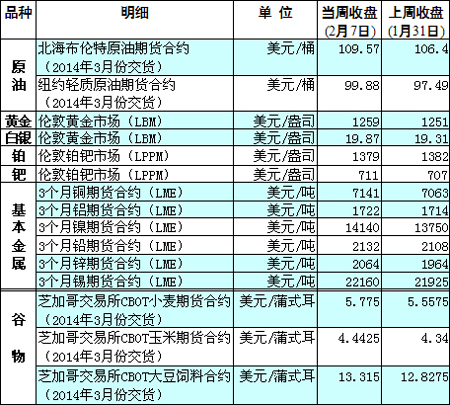 國(guó)際大宗商品期貨價(jià)格明細(xì)表[2014-02-10]