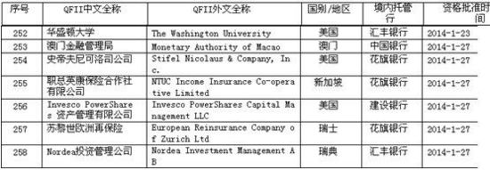 證監(jiān)會今日公布最新QFII名錄,該名錄顯示,2014年1月證監(jiān)會新批7家QFII機(jī)構(gòu),至此,QFII總數(shù)達(dá)到258家。