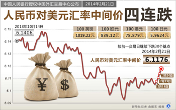 “此次的中間價(jià)連續(xù)下跌,是央行有意分化人民幣升值的預(yù)期。”對(duì)外經(jīng)貿(mào)大學(xué)金融學(xué)院兼職教授趙慶明對(duì)《經(jīng)濟(jì)參考報(bào)》記者說。從去年12月美聯(lián)儲(chǔ)宣布逐漸縮減購債規(guī)模開始,印度、土耳其等新興市場(chǎng)國(guó)家受到國(guó)際資本撤出沖擊貨幣普遍大幅貶值,但是同處新興市場(chǎng)國(guó)家之列,面對(duì)同樣的金融市場(chǎng)環(huán)境,人民幣似乎“獨(dú)善其身”,幣值仍然堅(jiān)挺,市場(chǎng)也較為一致看好人民幣繼續(xù)升值。而從外匯占款等指標(biāo)來看,外部資金也仍然持續(xù)流入中國(guó)。最新的1月份外匯占款統(tǒng)計(jì)數(shù)據(jù)還未公布,不過,趙慶明表示,預(yù)計(jì)1月份外匯資金流入依然顯著,央行的策略是引導(dǎo)人民幣匯率略微走弱,也借此警示進(jìn)來的熱錢。